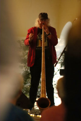 Spontankonzert auf dem Bahnhof Ljubliana... Mike am Alphorn